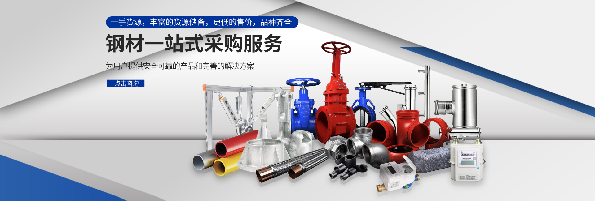 主要生產經營閥門,溝槽管件,瑪鋼管件,消防軟管,不銹鋼管件,鋼材,電力儀表等產品咨詢熱線:18601254360